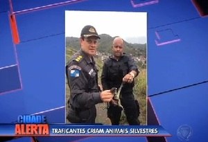* R7 - Policiais do Batalhão de São Gonçalo (7ºBPM) encontraram animais criados por traficantes para amedrontar inimigos no Morro do Martins, em São Gonçalo, região metropolitana do Rio. No alto da comunidade, os PMs localizaram lagartos escondidos num buraco. Os animais seriam do traficante Wallace Batista, conhecido como Pixote. O criminoso está foragido.
