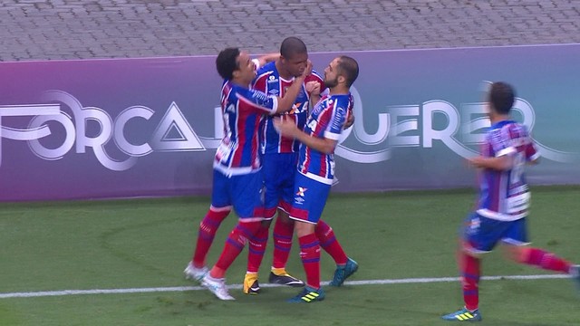 O lateral escorregou e se chocou com o atacante do Bahia. Os jogadores do Grêmio reclamaram bastante, mas o árbitro manteve a marcação. E Rodrigão não perdoou.