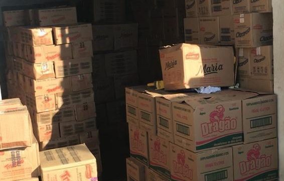 identificou um depósito com dezenas de caixas, contendo gêneros alimentícios e
