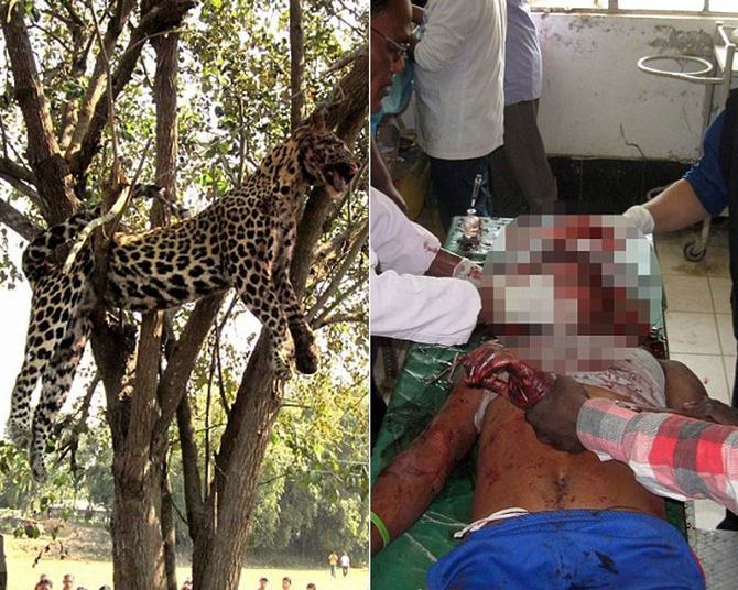 Moradores de um vilarejo espancaram e enforcaram em uma árvore um leopardo que havia devorado o rosto de um homem e atacado outras duas pessoas na Índia