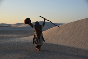 Durante as gravações, que começavam quando o sol nascia e duravam até os últimos momentos de luz natural do dia, Gontijo diz que não sofreu muito com o calor, apesar das roupas pesadas e da barba e do cabelo postiços. "Usar roupas compridas no deserto funciona! Aqueles tecidos mais pesados deixam passar o vento, porque o Nordeste tem brisa, e você não se queima de sol. No Rio sinto mais calor.