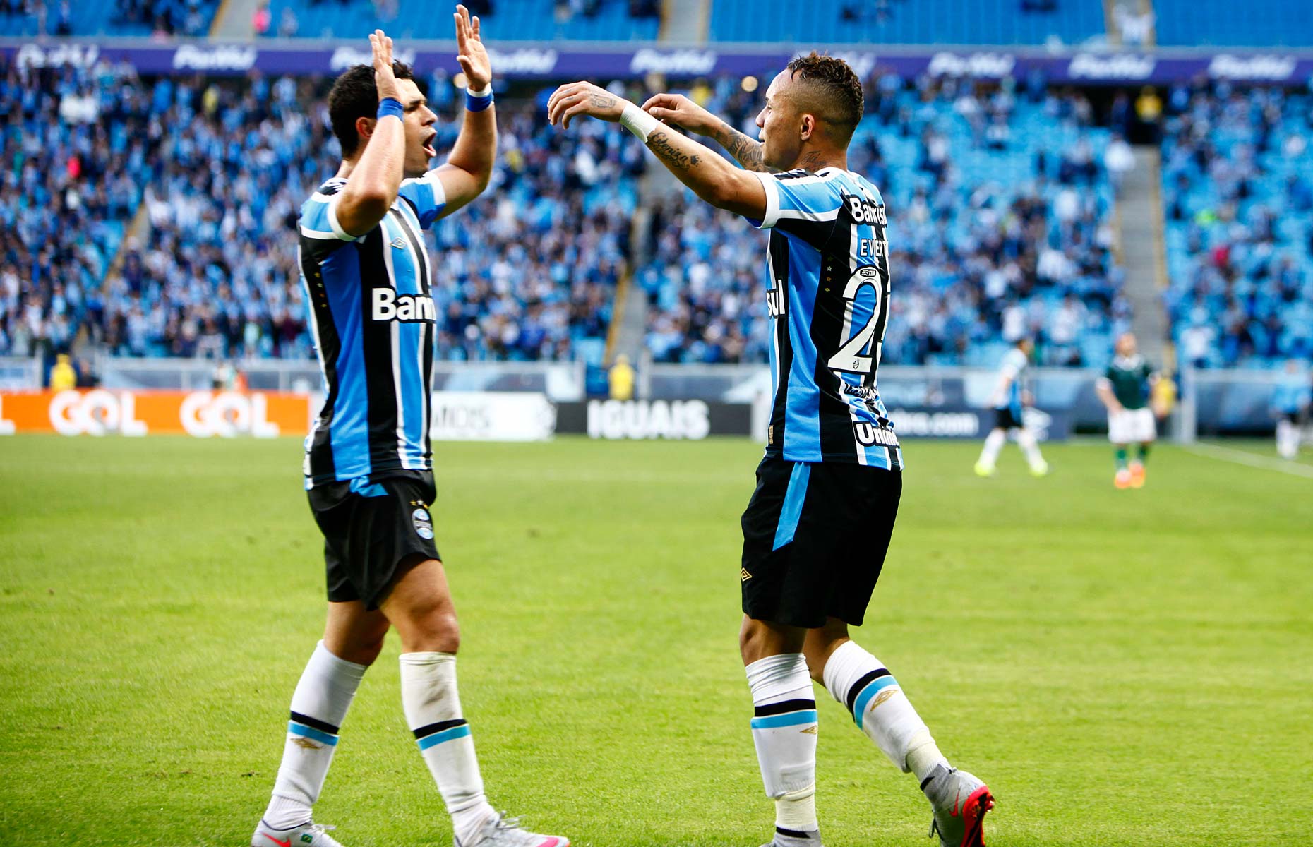 O Grêmio seguia melhor. Douglas, por exemplo, quase decretou a virada, mas Renan, em defesaça, impediu outro gol do camisa 10 tricolor. Já Giuliano, por preciosismo, desperdiçou ótima chance. A tensão foi aumentado dentro de campo e entre os gremistas nas arquibancadas da Arena. O Goiás, sempre que possível, buscava o ataque. Mas faltou tranquilidade nas raras investidas. Eis que Everton, aos 37, garantiu o triunfo gremista. Contra-ataque, passe de Mamute e finalização de uma das novidades gremistas do dia. O Grêmio sofreu – com Tiago garantiu a vitória pouco após o gol de Everton –, mas venceu o valente Goiás e segue muito forte em busca do líder Corinthians. O duelo de quarta promete!.